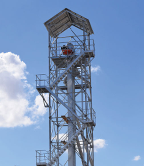 Kullanım kolaylığı sağlamak amacıyla lisansa uygun sarmal merdiven yapılır. Son işlem olarak daldırma galvaniz kullanılmıştır. Yeteri sayıda dinlenme platformu mevcuttur.